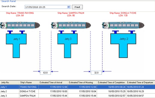 碼頭調度系統處理船運信息的管理和自動安排船靠岸碼頭的計劃。碼頭調度系統可以遠程通過WEB登錄,船運公司可以在船到來之前在系統上注冊船的信息,用戶可以在網絡上查看船被分配的停靠碼頭及裝卸船的計劃安排。碼頭調度系統除了支持B/S結構,還有C/S結構的客戶端。在客戶端上有船運計劃總覽、船運計劃調整、參數調整、歷史計劃查詢、碼頭調度報表等功能。財務部門還可以在系統上生成港口日報、年報等財務報表。