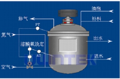 在耗氧型發酵過程中,氧是作為微生物生長必須的原料,若供氧不足,將會抑制微生物的生長和代謝的進行。為此在發酵過程中要保持一定的溶解氧濃度。影響溶解氧濃度的主要因素有供給的空氣量、攪拌器轉速和發酵罐的壓力。