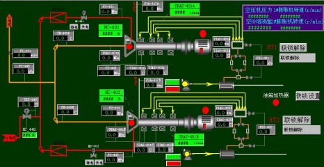 空分裝置大部分采用的是常規控制、難點和重點是空壓機組的連鎖保護和防喘振控制、分子篩系統的時序控制。